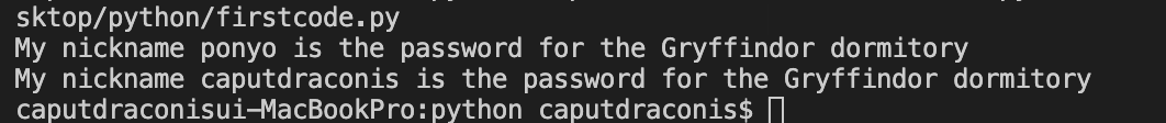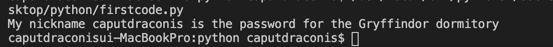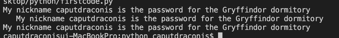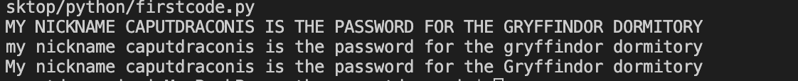 str = "My nickname caputdraconis is the password for the Gryffindor dormitory"