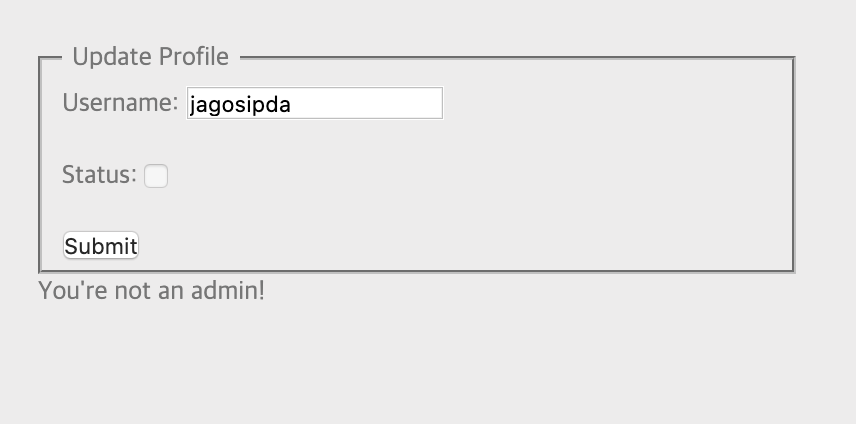 관리자가 내 이메일을 확인함과 동시에 profile 탭으로 이동하게 되는데, 그때 파라미터값으로 아까 위에서 알아낸 username=jagosipda와 status=1을 주었다. status=1을 준 이유는 뭔가,, 아까 profile 탭에서 어드민 계정일시에 활성화되는 체크박스가 있길래 1을 주면 될거같아서,,모르겠다!!!