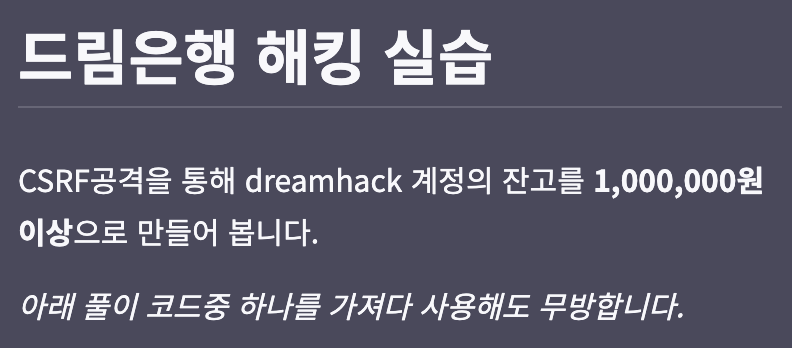 이렇게 게시물을 작성하면 사용자가 저 게시물을 클릭했을때! 자기도 모르게 dreamhack의 계좌로 1000000원이 송금될것같다. 후 해보자!!