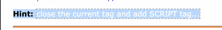 어 이거 뭔가 딱 해석해봐. 현재의 태그를 닫고 스크립트 태그를 넣어라