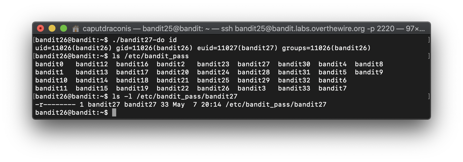 즉 /etc/bandit_pass에 있는 bandit27 권한의 파일도 열람 가능!