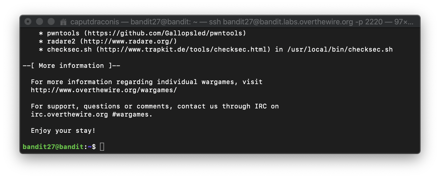 yes를 입력해주고 bandit27의 비밀번호를 입력해주먄!