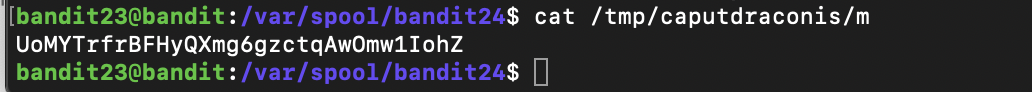 위의 사진처럼 $0을 입력하면 bash 쉘로 바뀜으로써 bandit33의 권한을 갖게 된다. 그렇기에 bandit33의 password에 접근할 수 있고 이를 출력하면1?