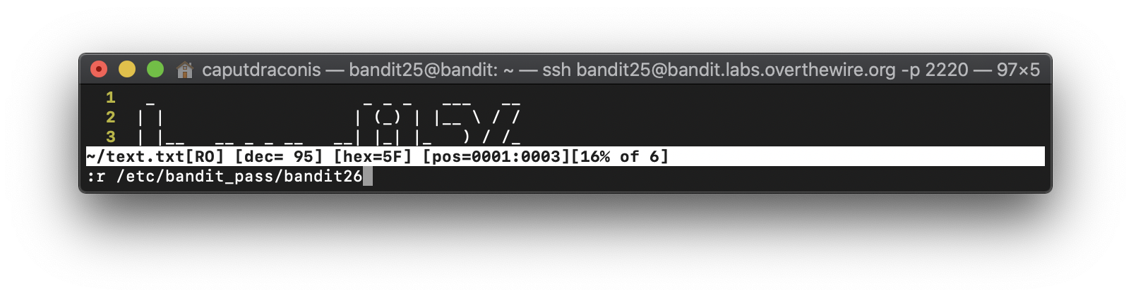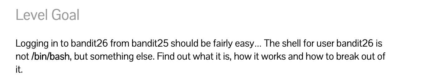 확인해본 결과 역시나 bandit26에게는 열람 권한이 없었고 이 프로그램을 이용해서 훔쳐봐보자