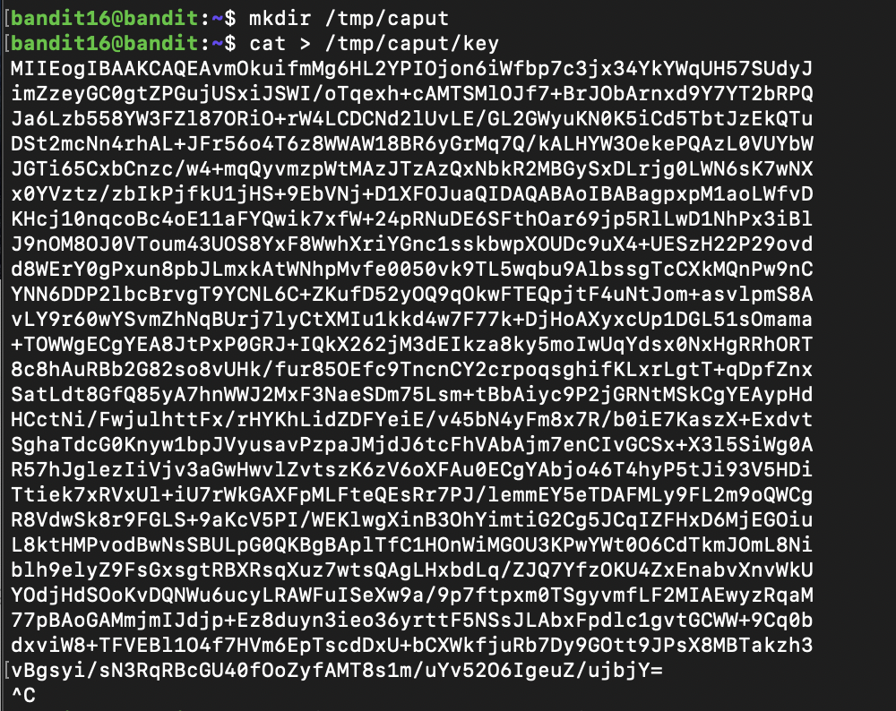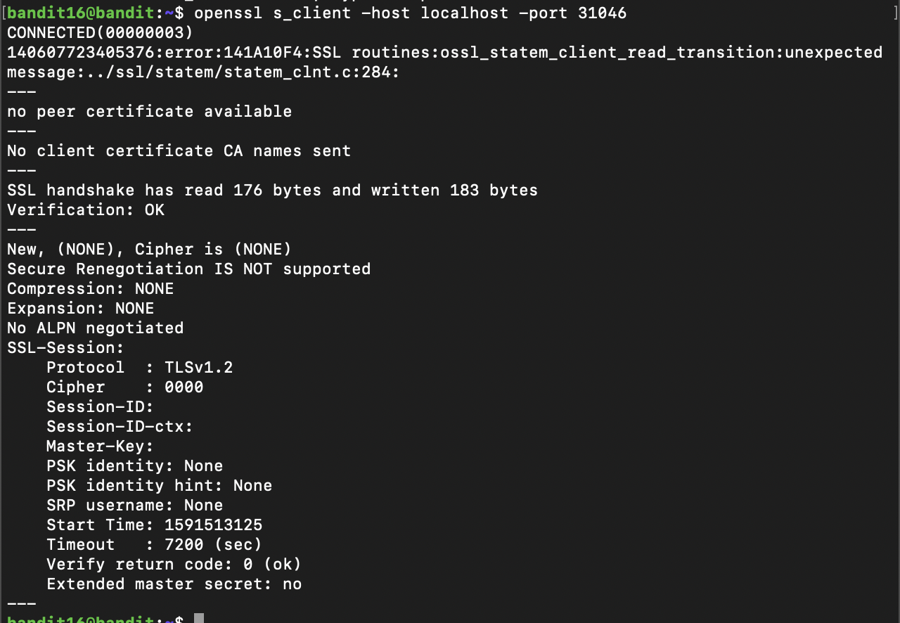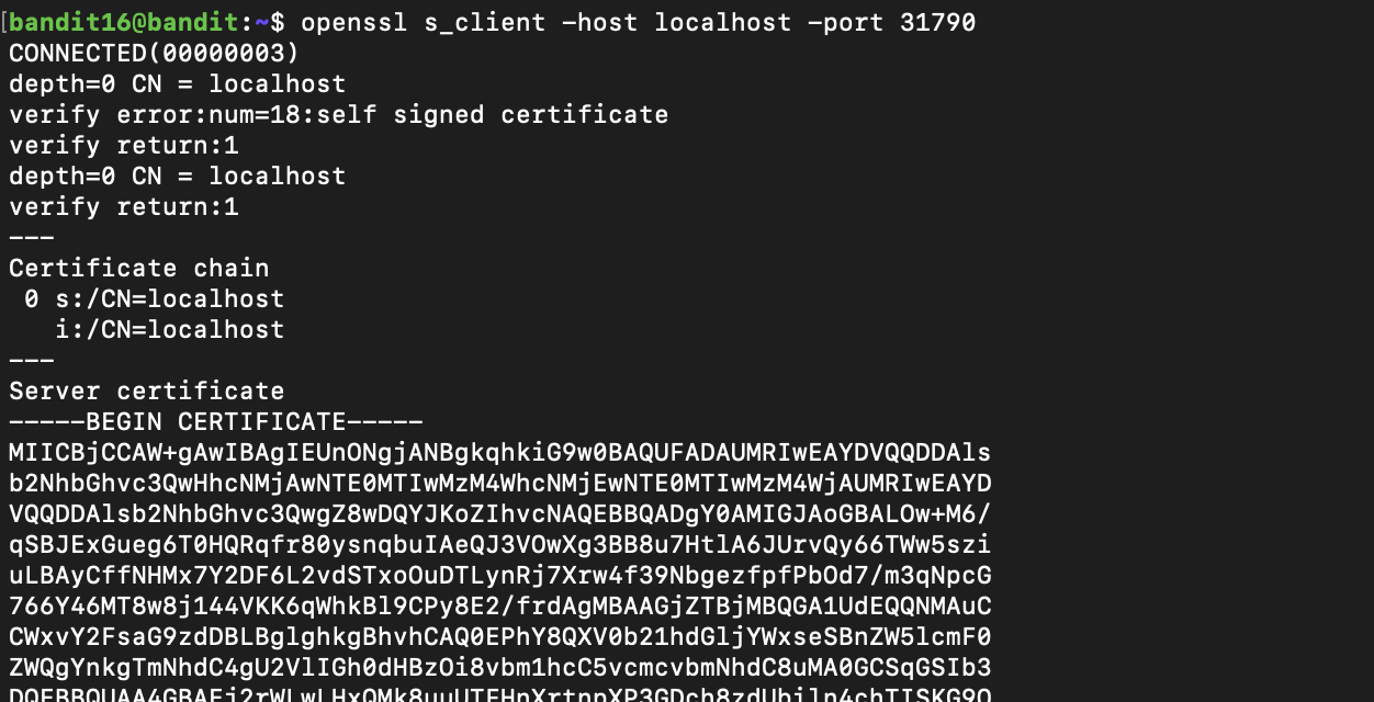 지난 포스트에서 얻었던 bandit15의 비밀번호로 접속을 하자