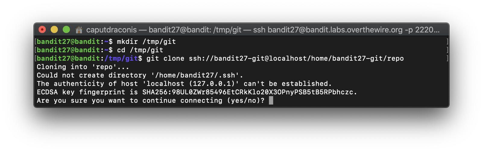 yes를 입력해주고 bandit27의 비밀번호를 입력해주먄!