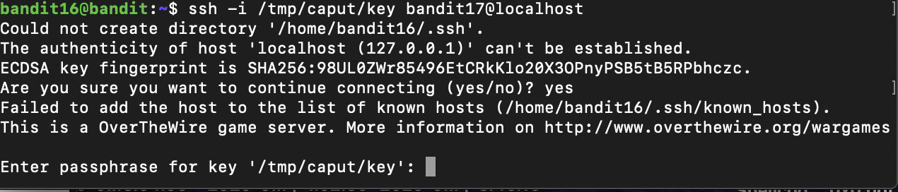 이제 여기서 문제가 생겼다. bandit 17에 로그인을 어떻게 할까