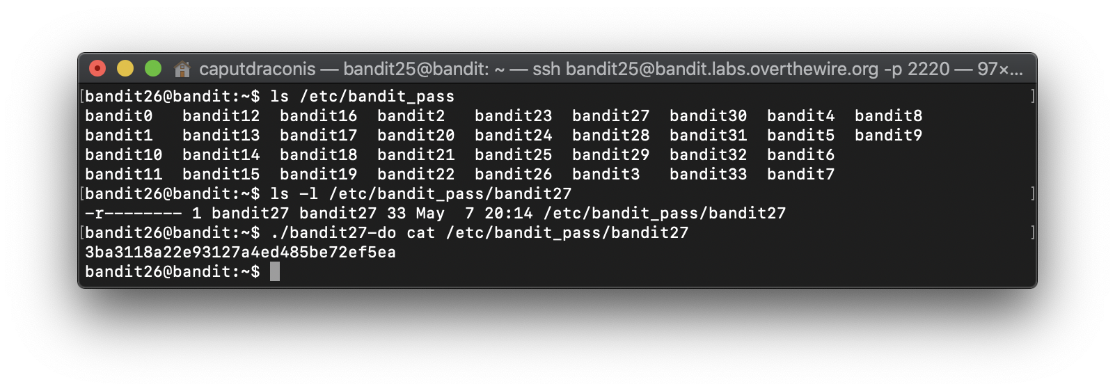즉 /etc/bandit_pass에 있는 bandit27 권한의 파일도 열람 가능!