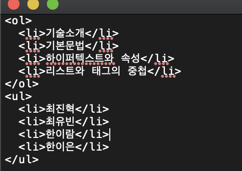 ol과 ul 태그 안에 중첩으로 li 태그가 들어간다.