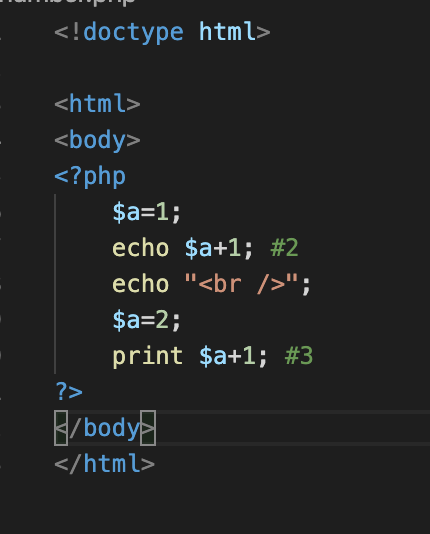 변수는 앞에 달러표시를 붙여 $a와 같이 사용한다. $a에 1과 2를 차례대로 대입시켰다. 그 변수는 숫자처럼 사용할 수 있다.(문자열도 가능)