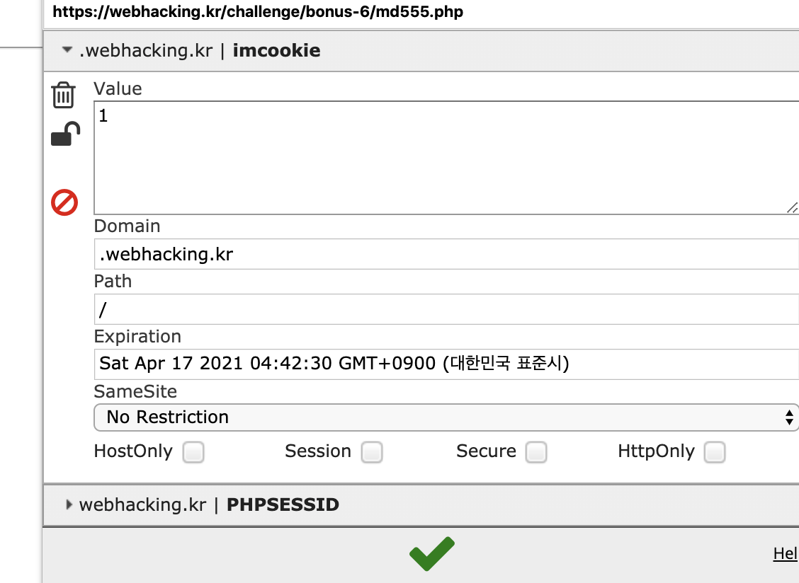 imget라는 이름으로 들어온 값, impost라는 이름으로 주어진 값, imcookie라는 이름의 쿠키값으로 주어진 값들이 모두 true면 된다!!!