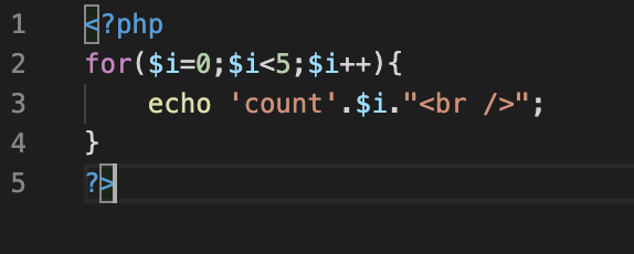 한 번 돌때마다 $i 값이 1씩 커지며 총 5번 반복하는 코드다.