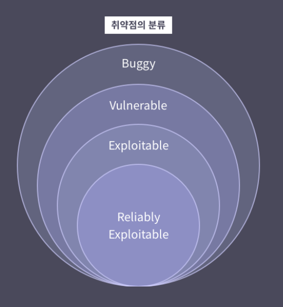 소프트웨어 취약점 중 이를 이용해 공격자가 의도한 동작을 수행할 수 있는 버그를 익스플로잇 가능한 취약점(Exploitable Vulnerability)