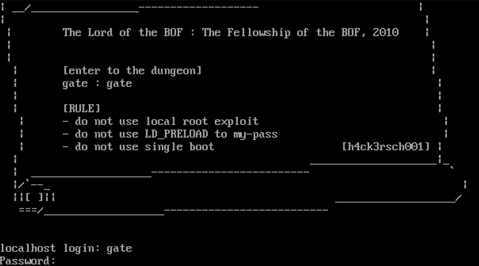 [BOF-BufferOverflow- 원정대란?] 비교적 쉬운 BOF 공략 환경인 Redhat 6.2에서부터 궁극의 Fedora 14까지 수십개의 레벨을 거쳐가며 BOF 시스템 해킹 실습을 하는 War-Game입니다. [접속 방법] BOF 원정대는 도메인이나 IP가 아닌, vmware 이미지 형태로 제공합니다. 따라서 각자의 PC에 워게임 서버를 가동하신 후 접속해 풀어나가는 방식입니다. [다운로드] 1. 다음 Vmware 이미지를 다운받아 부팅한다. h