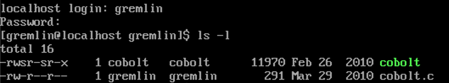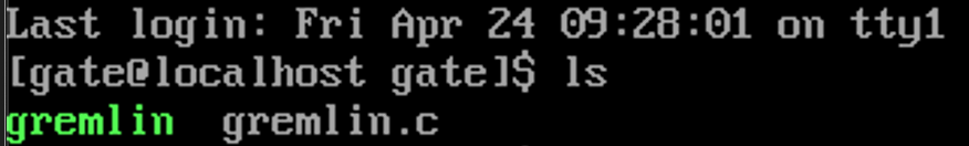 ls를 입력해서 무슨 파일이 있나 보니깐 gremlin과 gremlin.c가 있다.
