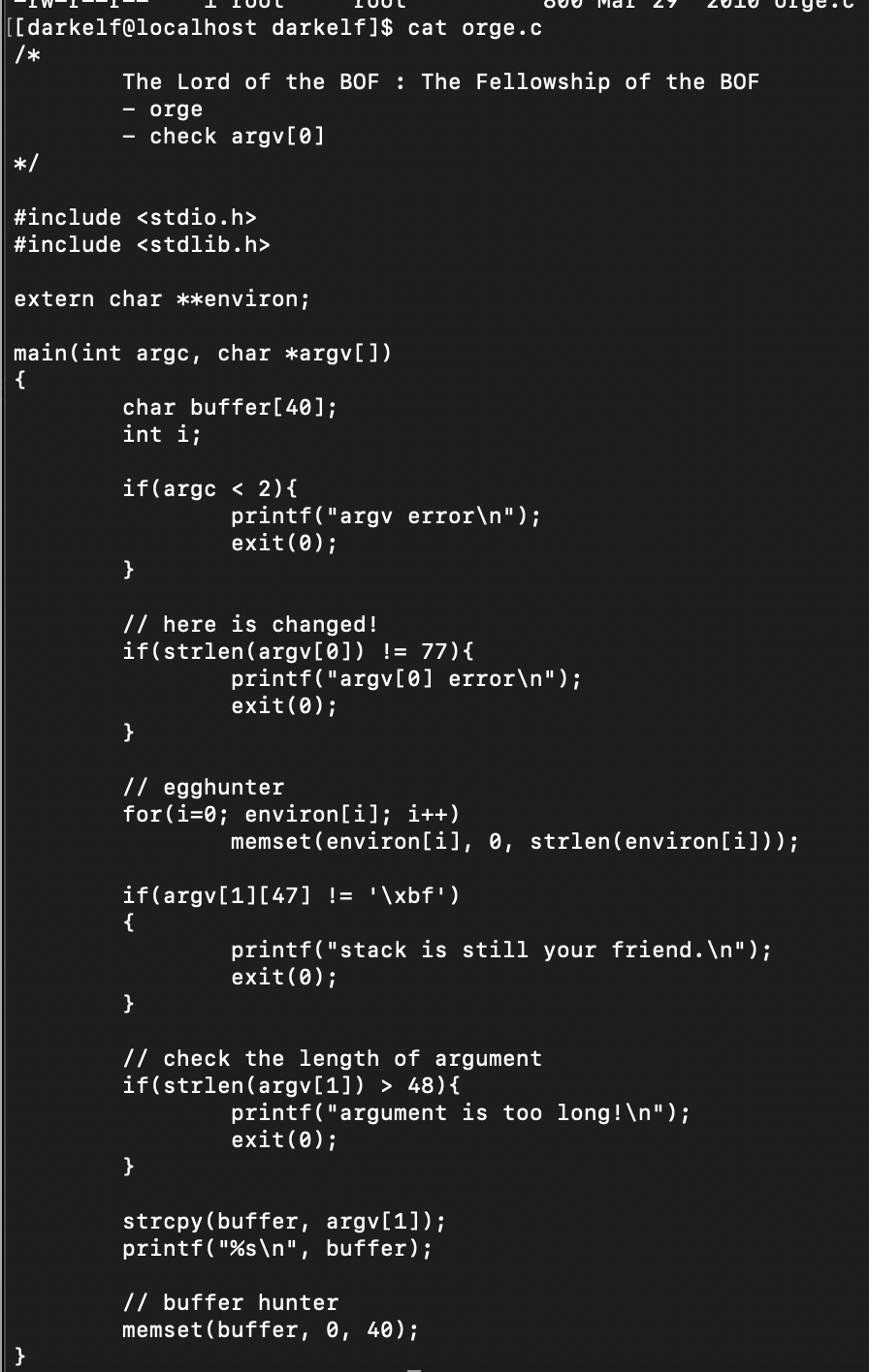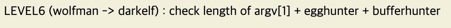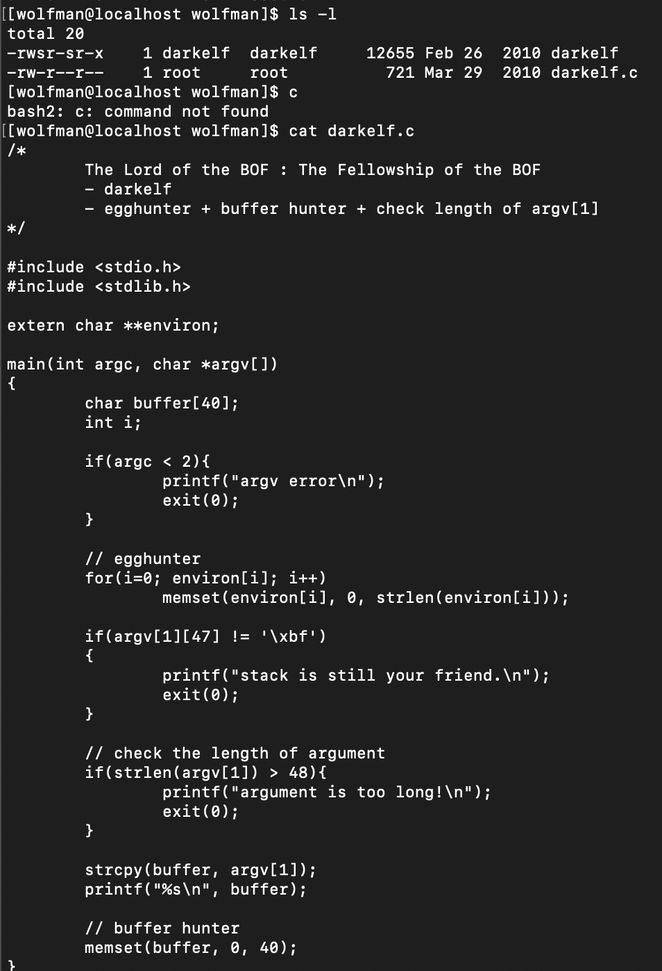 wolfman -> darkelf : check length of argv [1] + egghunter + bufferhunter