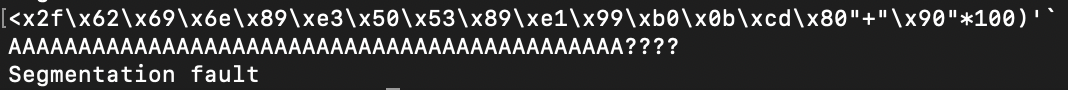 똑같이 Segmentation fault가 뜨길래 주소값을 \xb7\xfd\xff\xbf 에서 \x97\xfd\xff\xbf로 변경(0x20 뺌)함으로써 풀렸따
