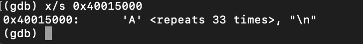 위에서와 같이 BP를 strncpy에 걸어주고 "A"를 41바이트만큼 넣어주었다.