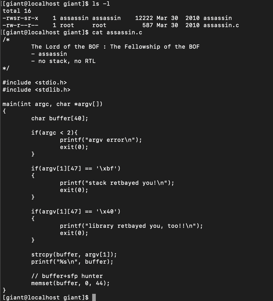 그냥 이렇게 보기에는 큰 취약점이 보이지 않는다. 40바이트 크기에 41바이트만큼 복사한다고 큰 취약점으로는 느껴지지 않는데,,흠