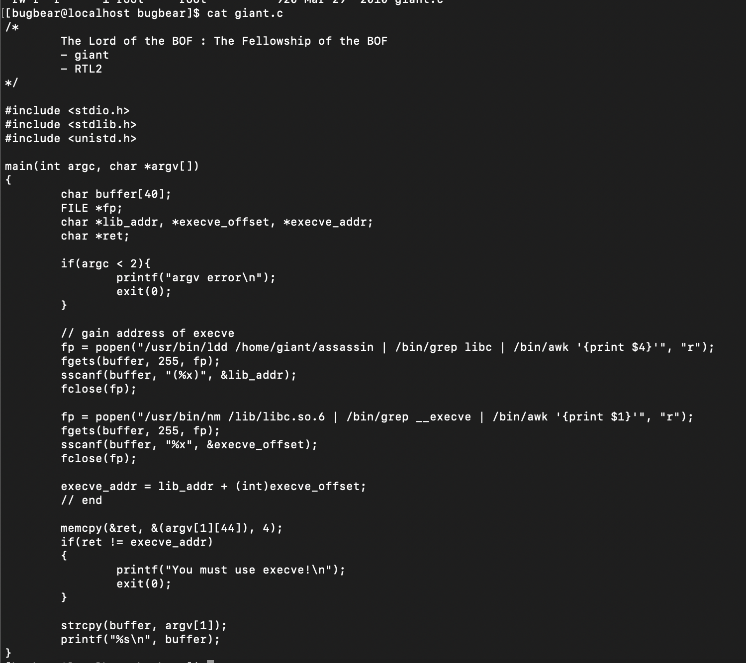 <문제 소스코드> 스택 영역을 사용할 수 없는 문제이다. RTL을 이용하라고 명시되어있다. RTL이란, Return-to-Libc의 약자로, Returen Address를 공유 라이브러리로 돌림으로써 라이브러리 함수를 통해 쉘��