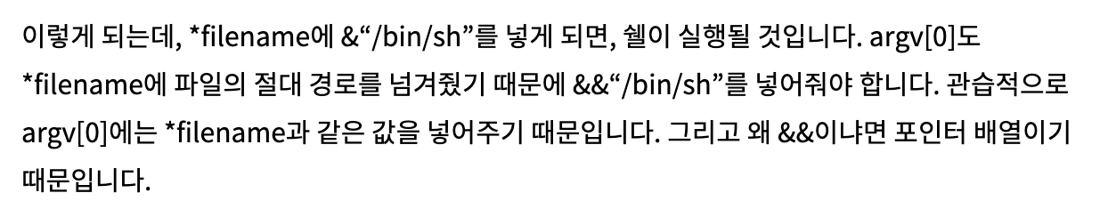 그냥 리턴 어드레스의 4바이트 뒤에 "/bin/sh" 문자열을 넣으면 된다 그러하다 그러하지??