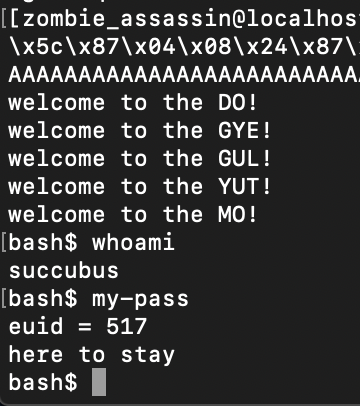 후하후하 개멋있어. 쉘코드가 있는 주소로 쩜프!!!!!!!!! 쉘코드가 실행이 된다... 후 문제 풀어보자