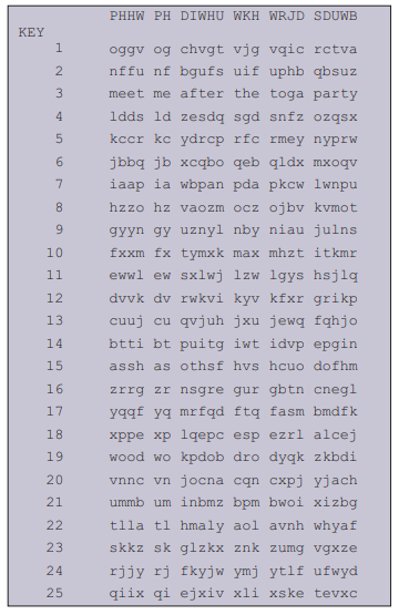 k에 대해서 25개의 가능성 밖에 없기에 위 사진과 같이 Brute-Force Attack을 진행할 때, 뚫리기 너무 쉬운 암호화 방식입니다.