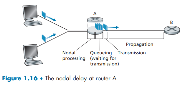 $$ d_{nodal}\,=\,d_{processing}\,+\,d_{queuing}\,+\,d_{transmission}\,+\,d_{propagation} $$