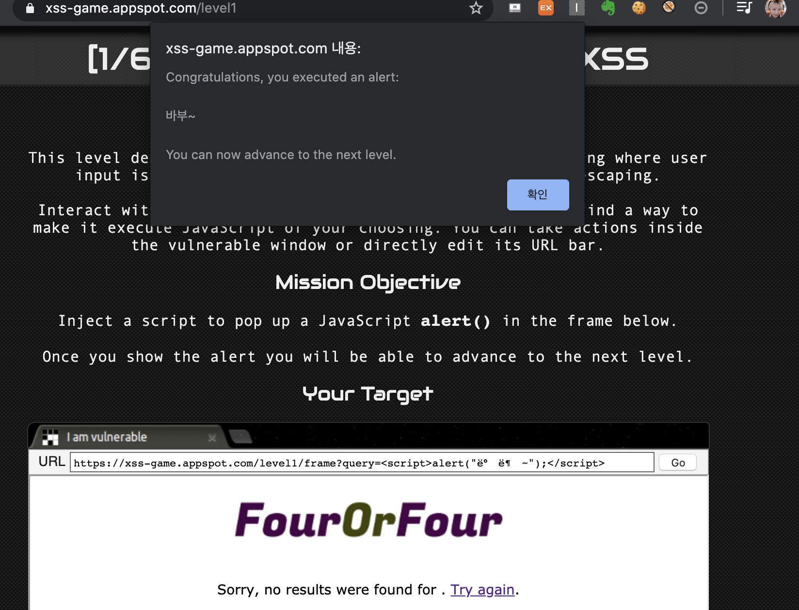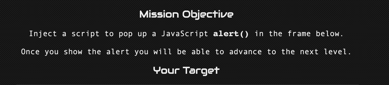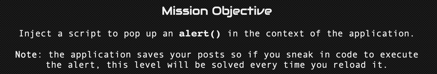 자바스크립트로 alert()를 수행하는 스크립트를 삽입하는게 이 게임의 목표다!
