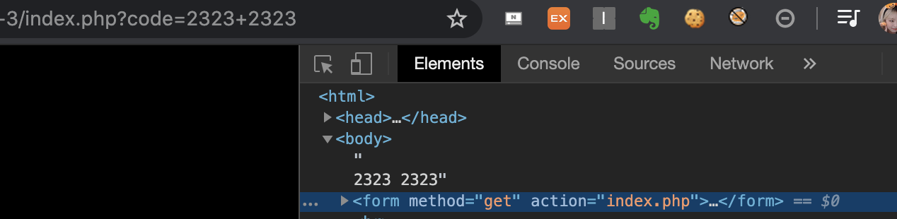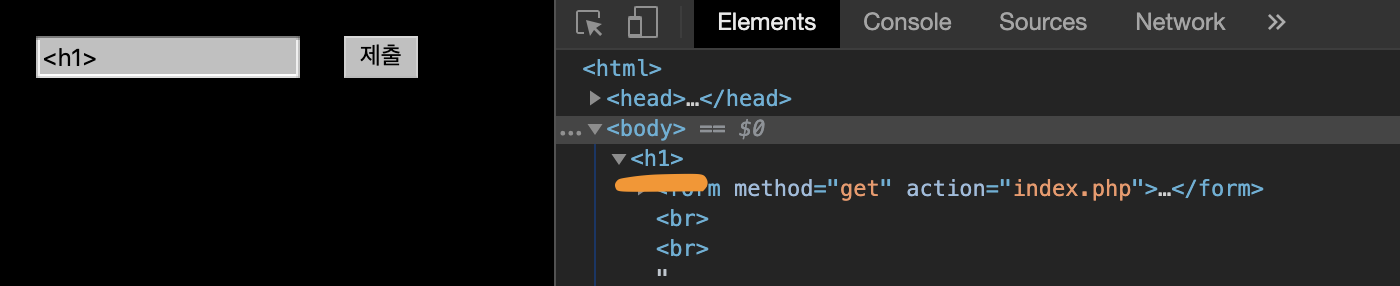 사용자의 입력값이 get 방식으로 code라는 이름으로 넘어간다. 그래서 위를 보면 주소값에 code=<사용자의 입력값>이 주소를 통해 넘어간걸 볼 수 있다.