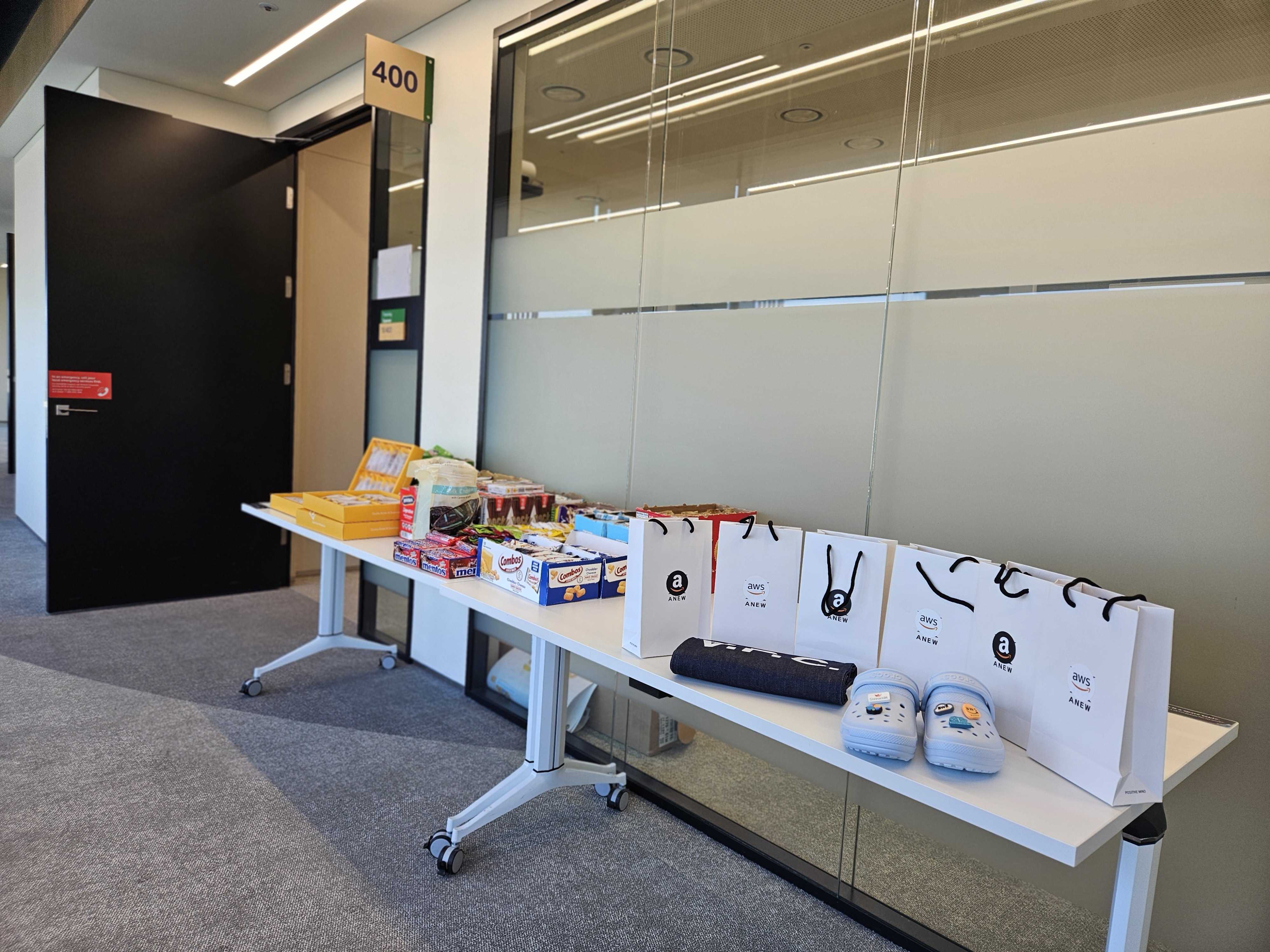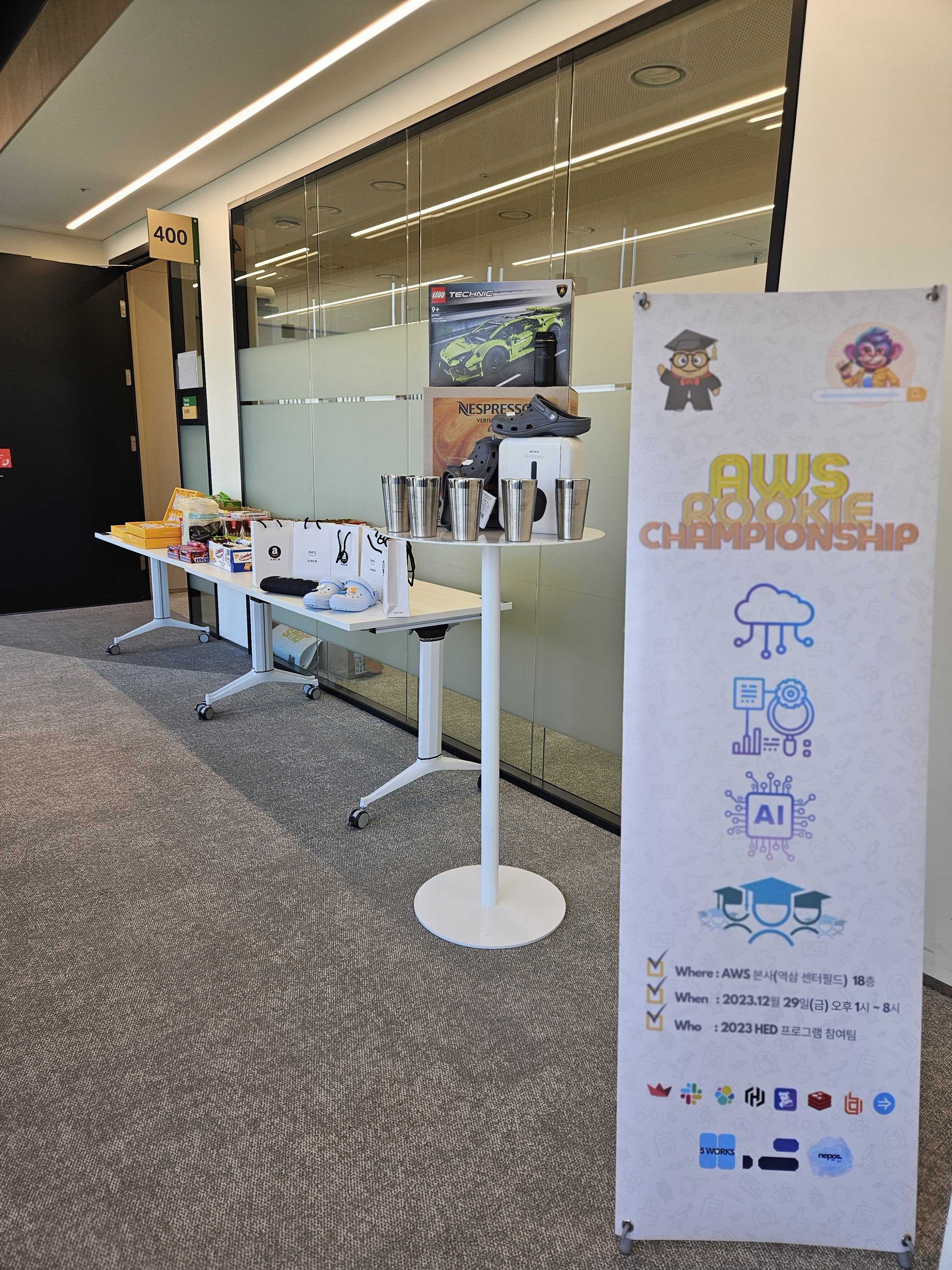 아침 일찍 AWS 에 도착해서, 상품&간식 옮기기 와 JAM 참여자분들을 위한 선물 세팅을 했습니다. 아직도 다리가 아프네요.. 다른 분들이 도착하셨을 때, 멋있게 준비되어 있는걸 보고 놀라시는 모습을 상상하며,, 열심히 했습니다! 물론 이사님이 다 하셨습니다..ㅎㅎ