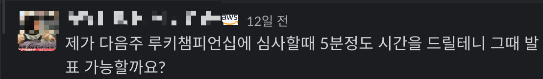 AWS JAM 도 구경하고, 많은 분들과 얘기를 나누다 보니,, 빠르게 발표 시간이 다가왔습니다. 생각보다 너무 많은 분들이 오셔서, 옆방에서 급하게 의자를 옮기면서도 머리 속으로는 '내가 여기서 발표를 어떻게 해ㅠㅠㅠㅠ' 라고만 계속 생각했던 것 같네요..