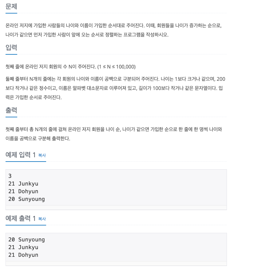 /* BOJ 10814์ ๊ด๋ จ๋ ๊ธ์