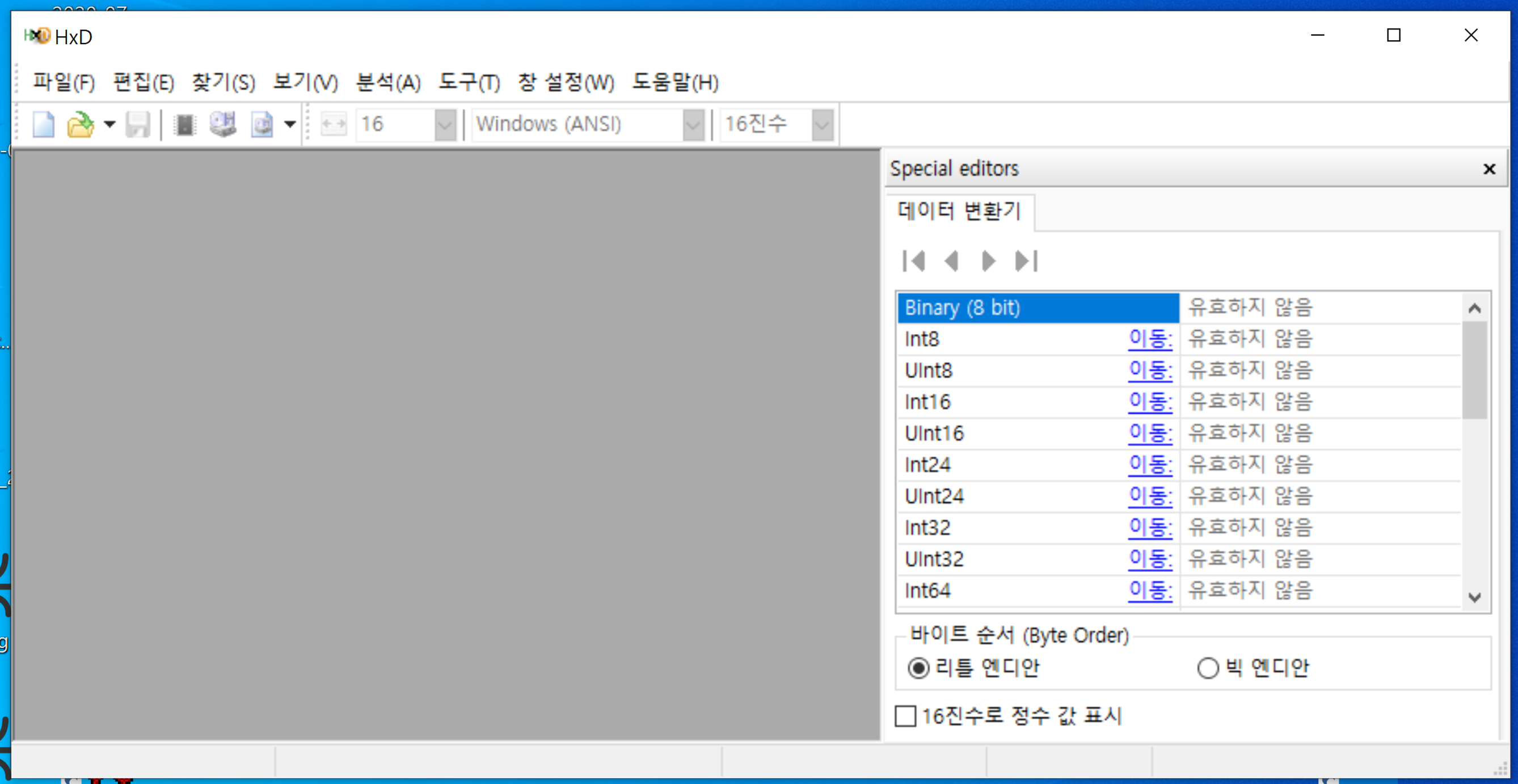 설치한 HxD를 실행시킨 모습이다. 하씨 어려워보인다