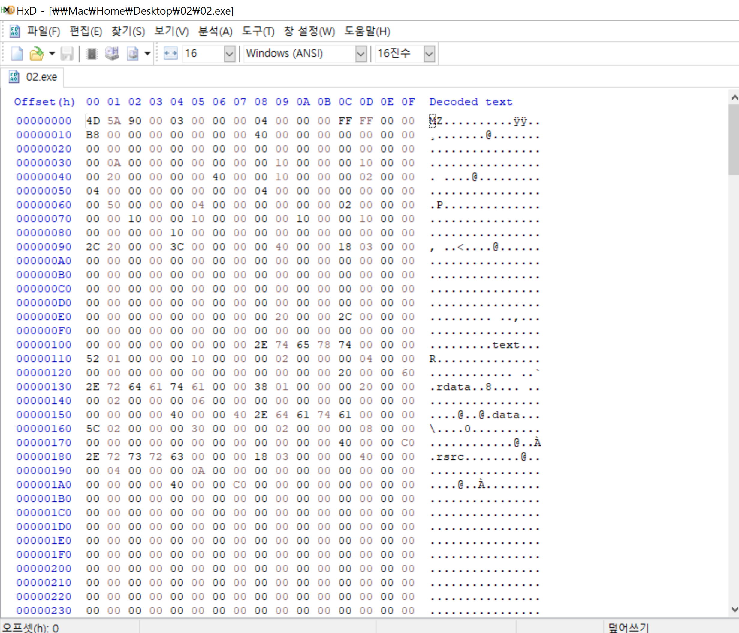 PE 문제가 발생하면 HexCode로 분석하는 점을 노린 문제라고 어느 블로그에 써있다,, 그럼 HexCode를 보여주는 HXD(?)를 깔아야겠다 후우ㅜ