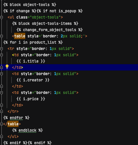위의 html을 extend 해서 사용하는 방법도 있지만, 원하는 위치에 테이블을 두려고 이를 그대로 복사해와서 이를 편집해주었습니다.