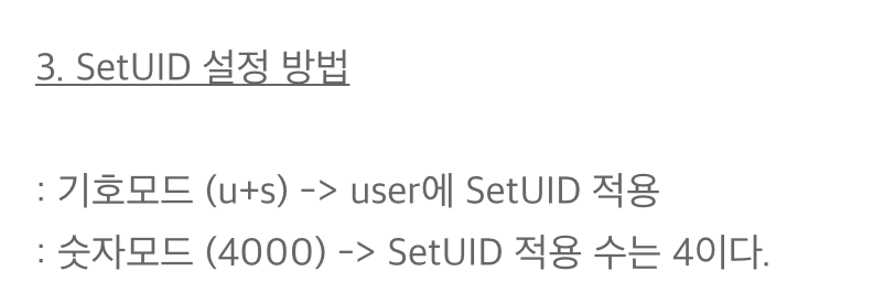 SETUID에 대해 조금 더 자세히 알고싶다면!? => https://leeggoggal.tistory.com/10