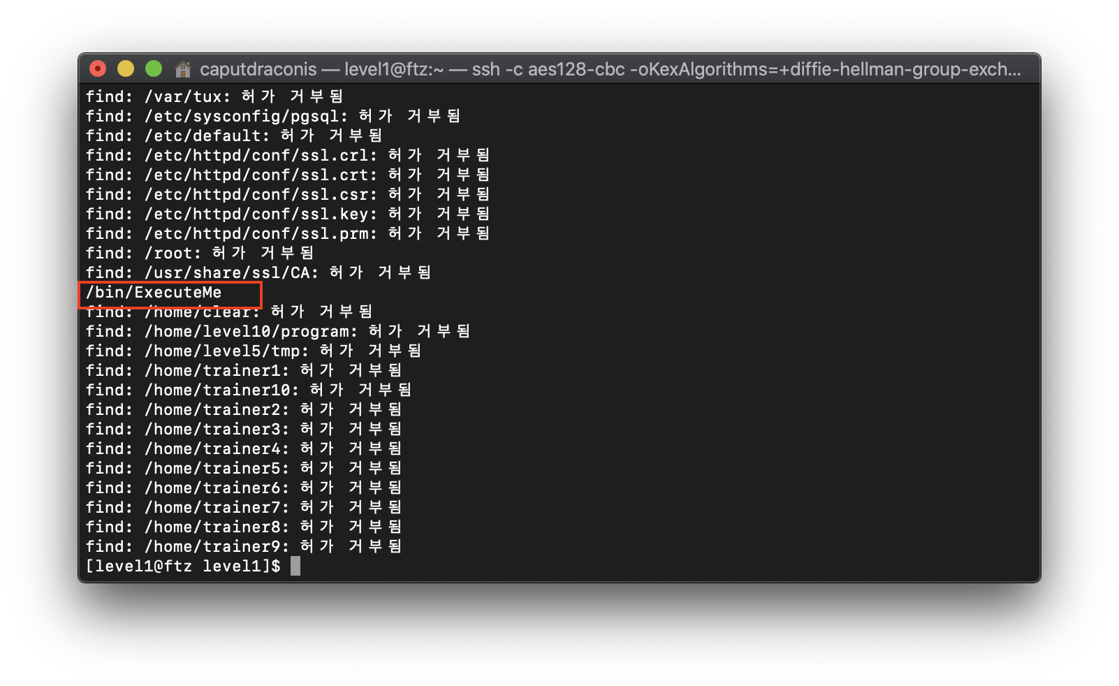 수많은 검색결과 중 유일하게 하나! /bin/ExecuteMe 파일이 있다!