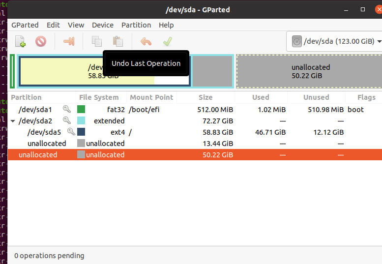 설치가 완료되면 sudo gparted를 입력해 gparted를 실행시켜줍니다.