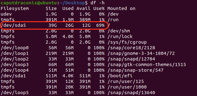 이렇게 저장공간을 확장해줘도 우분투 상에서는 아래의 사진과 같이 늘려준 용량만큼이 할당되지 않은 상태로 남아있게 됩니다.