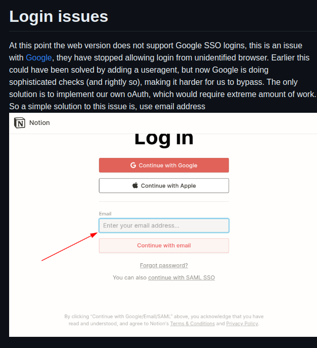 Lotion 은 노션의 거의 모든 기능을 사용할 수 있지만 Google SSO 로그인 기능을 제공하지 않습니다. 구글이 확인되지 않은 브라우저에서의 로그인을 차단했기 때문입니다.