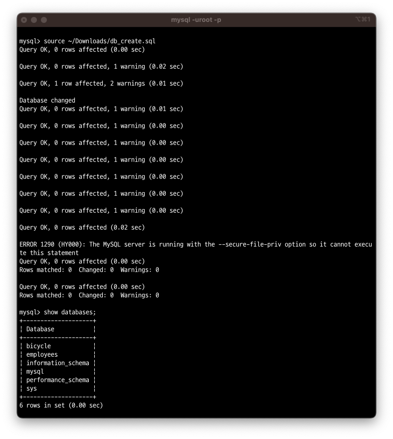 이 오류는 MySQL 에 로드할 수 있는 파일은 지정된 디렉터리에 위치하여야 하기 때문에 발생합니다.
