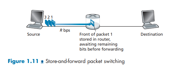 대부분의 패킷 스위치(라우터)들은 store-and-forward transmission을 사용합니다. 이는 패킷 스위치가 Source로부터 모든 패킷을 받고 난 후에, Outbound Link로 전송을 시작하는 방식을 의미합니다.