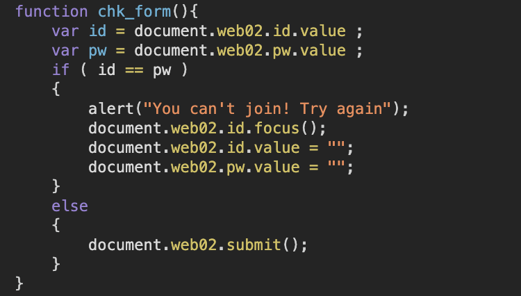 Join 버튼을 누르면 chk_form()이라는 자바스크립트 함수가 실행된다.