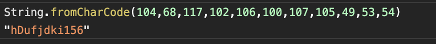 그럼 이렇게 나온 숫자 조합을 String.fromCharCode 함수에 인자로 넣어주면?