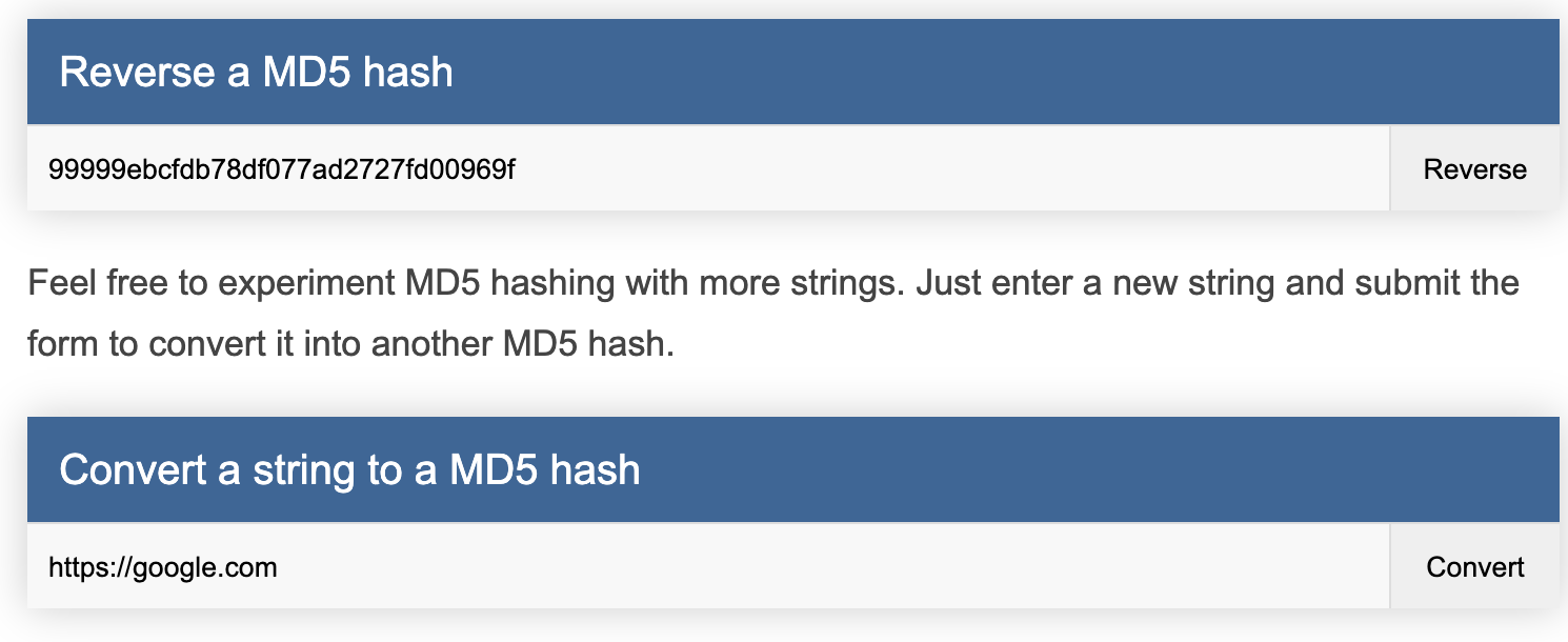 그럼 저 해쉬값이 의미하는 것을 뭘까. 저 사이트를 의미하는 무언가가 아닐까 하는 생각에 암호화를 생각했다. url로 주어진 링크를 암호화한 값을 h로 주는 것이다. (사실 바로 생각은 안났다 긁적)